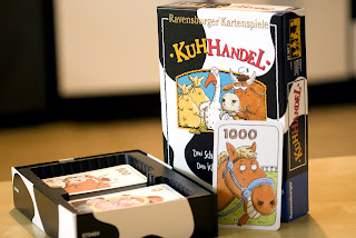 Kuhhandel/You ‘re Bluffing (1985) — это классическая карточная игра, суть которой предельно четко выражена в сочетании ее немецкого и английского названий. Немецкое название, Kuhhandel (коровьи торги), выводит на первый план элемент аукциона, а в английском названии отчетливо звучит слово "блеф", и этими двумя терминами выражено практически всё. За исключением того, что Kuhhandel является одним из интереснейших феноменов мира настольных игр.