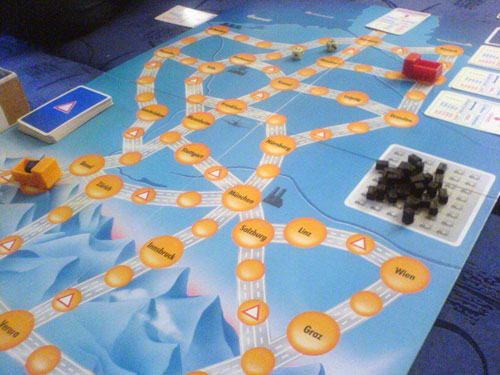 К сожалению, вскоре после начала партии мы были вынуждены прекратить игру, так что полноценно опробовать Auf Achse не получилось и, наверное, в ближайшем будущем возвращаться к ней мы не будем. Игрушка эта появилась у нас случайно и представляет вызывает любопытство скорее как музейный экспонат :), нежели чем полноценная настолка. Тем более, что и рейтинг на BGG у неё невелик — всего 6.33 из 10.