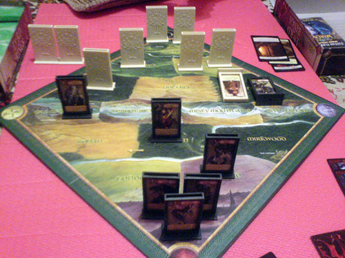 Единственная партия в LOTR: Confrontation закончилась не в мою пользу. В этот раз я играл несобранно и совершенно не обдумывал ходы. Поэтому уже в начале партии одни из самых сильных моих героев — Шелоб и Witch King были повержены, а для того, что происходило потом очень хорошо подходит слово "агония".