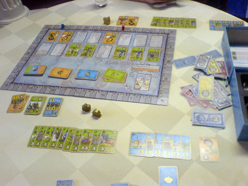 Saint Peterburg наряду с No Thanks! я считаю самым удачным приобретением из последнего заказа. Игрушка эта оказалась очень увлекательной. Вообще-то, она не очень связана с темой, несколько абстрактна, да и, хотя в ней есть поле и даже несколько фишек, это, скорее абстрактная игра. Но, тем не менее, она оказалась очень интересной и очень мне понравилась.