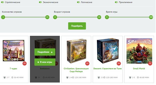 Далее выбираете в каталоге интересные Вам продукты и добавляете в список «своих игр».