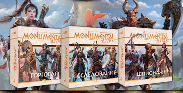 Не так давно издательство «Лавка игр» выпустило целых три коробки с подзаголовком «Монументальность: Дуэль». Это три дуэльные игры о развитии цивилизации, разложенные по трём разным коробочкам, которые немного отличаются друг от друга.