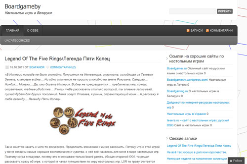 На просторах сети появился ещё один сайт о настольных играх. Он называется Boardgameby и располагается по адресу http://boardgameby.wordpress.com/. Автора сайта зовут Александр aka SCAFANDR, он планирует публиковать обновления раз в неделю.