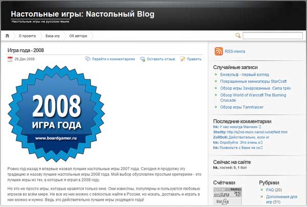 PS: напоследок – минутка ностальгии. Наверное не все помнят, но когда-то, почти 10 лет назад BoardGamer.ru выглядел так: