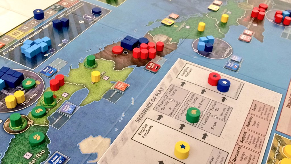 Не так давно я освоил Cuba Libre. Не с первого раза. Игра долго ждала своего часа, год назад мы её попробовали, ничего не поняли и отложили до лучших времён. И вот, приступили к ней снова. Было непросто. Потребовалось перевести кучу памяток, полностью погрузиться в правила, разобрать примеры. И отыграть несколько партий. Вот тогда всё стало более-менее понятно. Неясно только, как перенести этот опыт на товарищей, с которыми охота поиграть.