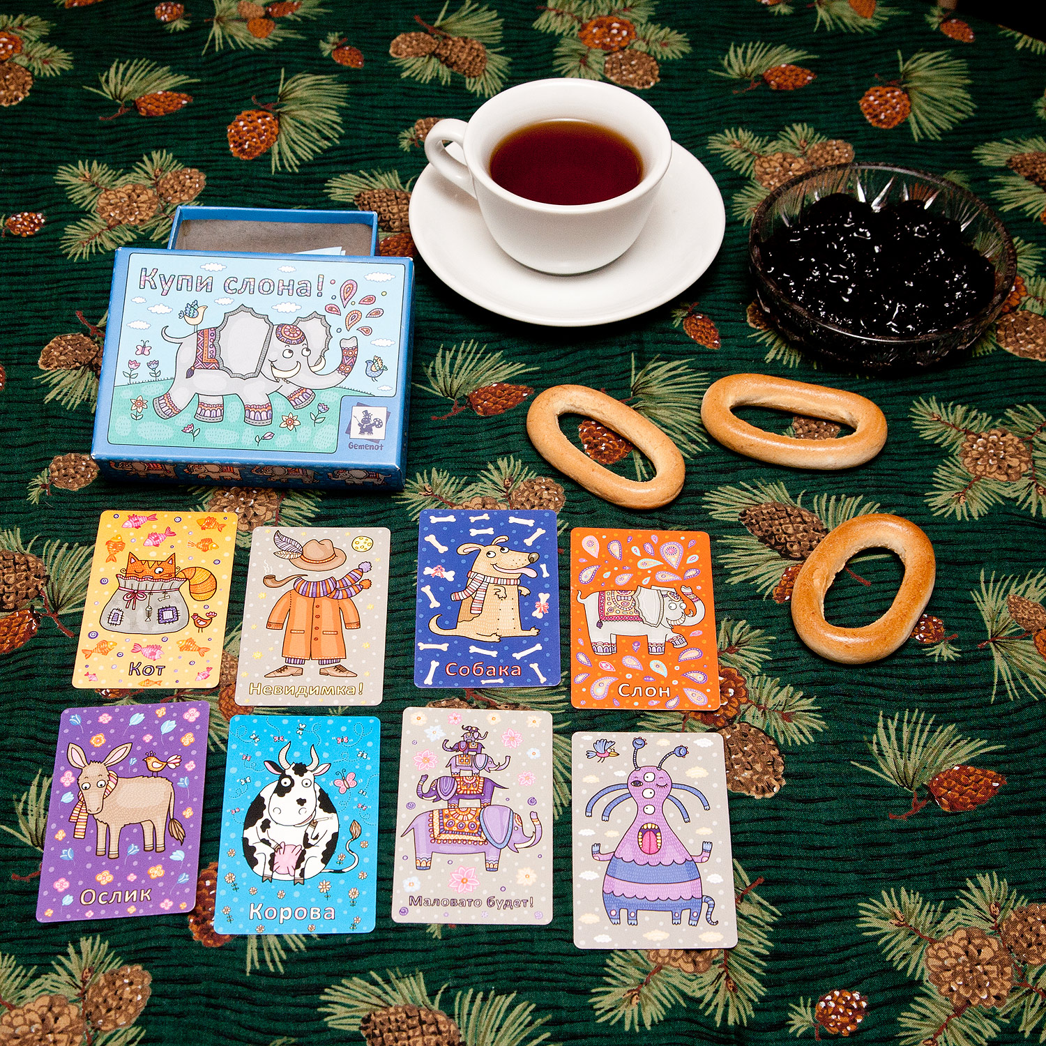На Тишинке я получил от Сергея Голубкина презент — новую игру его студии Геменот под названием Купи слона!. Игрушка карточная, основанная на популярной игре "Верю — не верю", в которую многие играли в детстве обычными игральными картами. Рассчитана на 2-6 игроков в возрасте от 8 лет. Читать далее