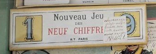 И снова разглядываем старенькие настолки на фотографиях из музея Сергиева Посада. На очереди — небольшая коробочка с надписью Nouveau Jeu des Nuef Chiffres. Она же —