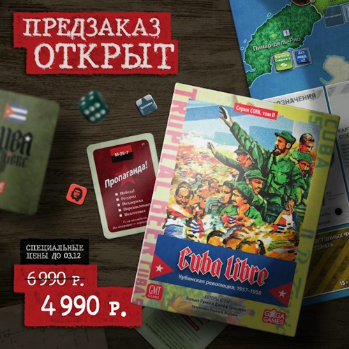 Не прошло и 5 лет с анонса локализации Cuba Libre, и вот уже на игру объявлен предзаказ. Прямо сейчас можно вписаться и получить коробку за 5000 рублей. Позднее в рознице обещают ценник существенно выше, 7000 рублей. Доставка предварительно запланирована на май 2026 года.