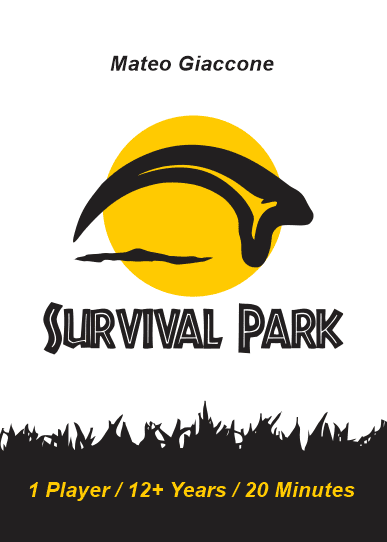 Попалась тут на Board Game Geek любопытная настолка. Соло-игра из 9 карт, в которой нужно выбраться из парка развлечений, населённого динозаврами. Игрушка называется Survival Park и названием (а также шрифтом, которым оно написано) как бы намекает на другой известный парк.