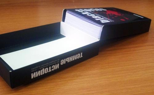 Внутри нас ожидают 50 карт историй. На российском рынке это наилучший показатель по соотношению (цена)/(количество данеток в коробке). =) Карты двухсторонние, на одной стороне загадка, на другой — разгадка.