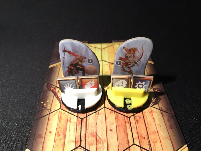 если смогу реализовать перенос информации на фигурки, то такие фигурки себе сделаю, тк неудобно играть в тактическую игру, когда смотришь на поле, а половины информации не видно(кто недобиток, кто ослаблен). ты должен сидеть и совмещать поле с карточками или приложением. коряво. и это говорю после 85 партий. да, приходилось мириться. да, пробовали распечатать на 3д принтере подставки от фанатов. нет, подставки всё равно корявые(видно только с одной стороны стола, половине игроков и чтобы изменить жизни нужно поднять фигурку, покрутить и поставить обратно), поэтому думаю своё решение.