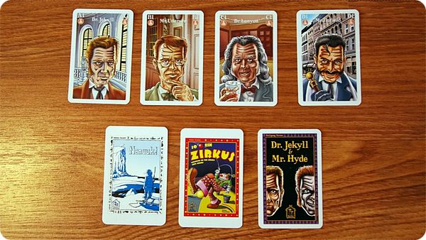 Ещё одна игра, доставшаяся мне от Гюнтера Корнета — Dr. Jekyll & Mr. Hyde. Это карточная игрушка, рассчитанная на 3-4 человек, созданная по мотивам одноимённого романа.