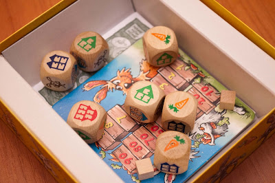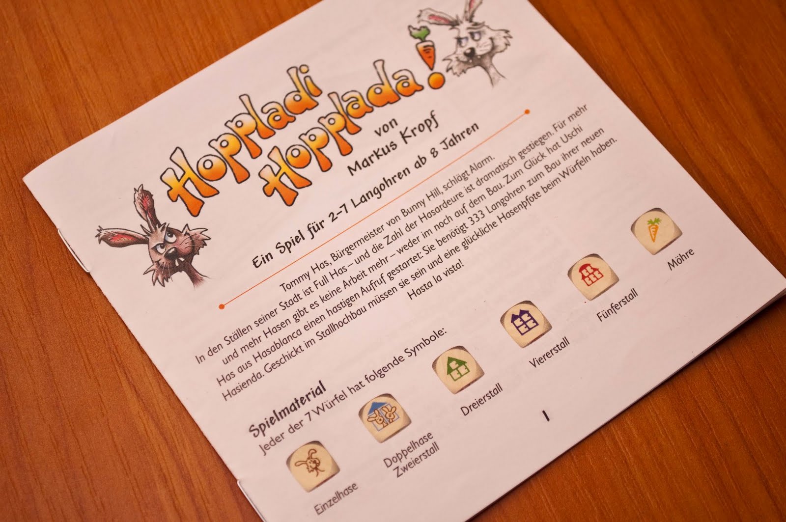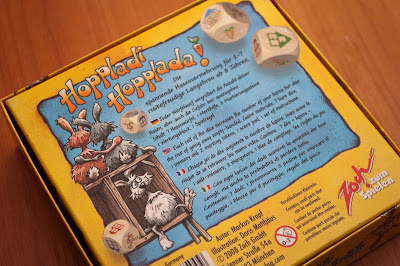 В Северном блоге о настольных играх опубликована подборка фотографий игры Hooppladi Hopplada. Это несложный филлер для 2-7 игроков, впервые представленный публике на выставке в Эссене в 2008 году. Игра целиком построена на бросках кубиков, и мне этого достаточно — в подобные настолки я никогда не играл, но, почему-то чувствую, что это — не моё.