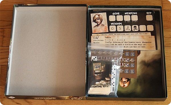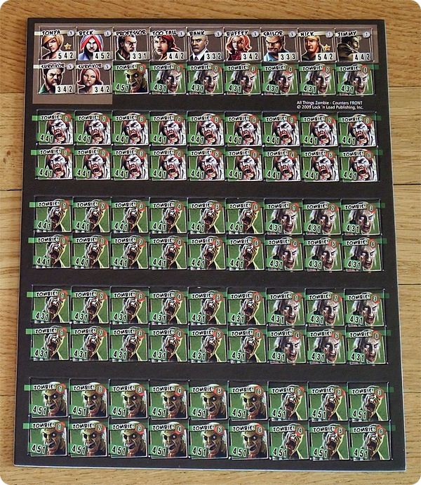 На самом деле выглядит неплохо. Зомби всего 3-х видов вроде, а у героев вся инфа на карточках, так что миньки тоже вполне можно приспособить.