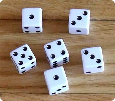 В комплекте идут шесть шестигранных кубиков. К сожалению, все они одного цвета. По правилам иногда нужно бросать сразу два кубика: один за себя, другой за зомби. Для таких случаев я добавлю сюда красные кубики из какой-нибудь другой игры.
