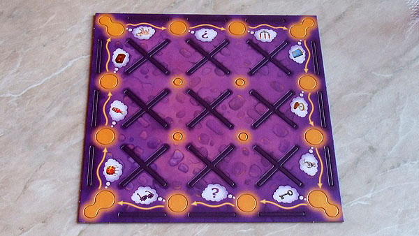 Игровое поле сделано из такого же плотного картона. Из него пока ещё не выдавлены "прорези" под зеркала и подставку — это поле не кладётся на стол, как это обычно бывает в играх, а вставляется в верхнюю часть коробки.