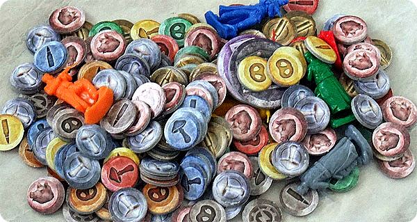 Теперь перейдём к игровым фишкам и жетонам. Их в игре целая куча.