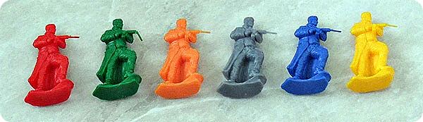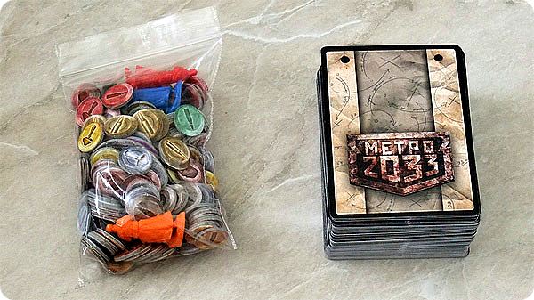 Шесть пластиковых фигурок — это герои, по одному на игрока. Это те же самые фишки, что мы уже видели в Терминаторе от Звезды. Ага, при выпуске Метро 2033 Мир Хобби сотрудничал со Звездой. К сожалению, в моём экземпляре у зелёного пехотинца было надломлено дуло винтовки М-16.