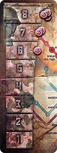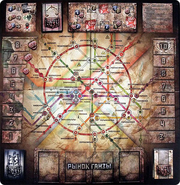 Игровое поле во второй редакции Метро 2033 содержит множество вспомогательных зон и счётчиков, кроме того, территория метро поделена на отдельные секторы, выделенные разными цветами. Для сравнения — ниже привожу фото поля первого издания.