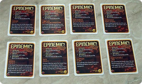 PS: забыл сказать, в комплект дополнения входит ещё одна стандартная зелёная карта "Эпидемии", которую можно добавить к шести таким же из базы и сыграть на "легендарном" уровне сложности.