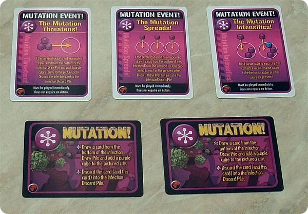 Пять особых фиолетовых карт "Мутация" для игры с новой фиолетовой болезнью.