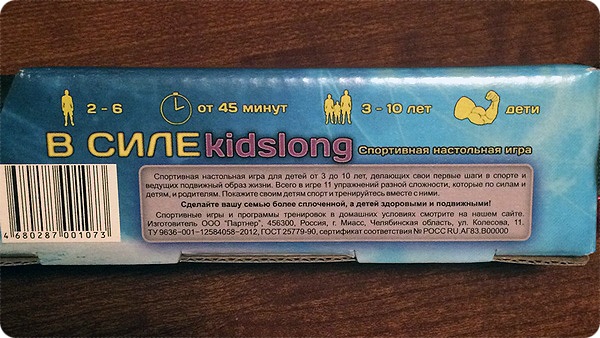 Из трёх последних новинок самой необычной мне показалась посылка, приехавшая из Челябинска. Ещё даже в нераспакованном виде она уже вызывала интригу. Длинная, цилиндрическая, совсем не квадратно-прямоугольная. Мы-то привыкли к более-менее стандартным упаковкам под настолки. А тут — такое. Что, давайте посмотрим на игру повнимательнее. Итак, настолка В силе, версия Kidslong. Рассчитана на компанию от 2 до 6 человек в возрасте от 3 до 10 лет. Производится в челябинской компанией под названием ООО "Партнёр".