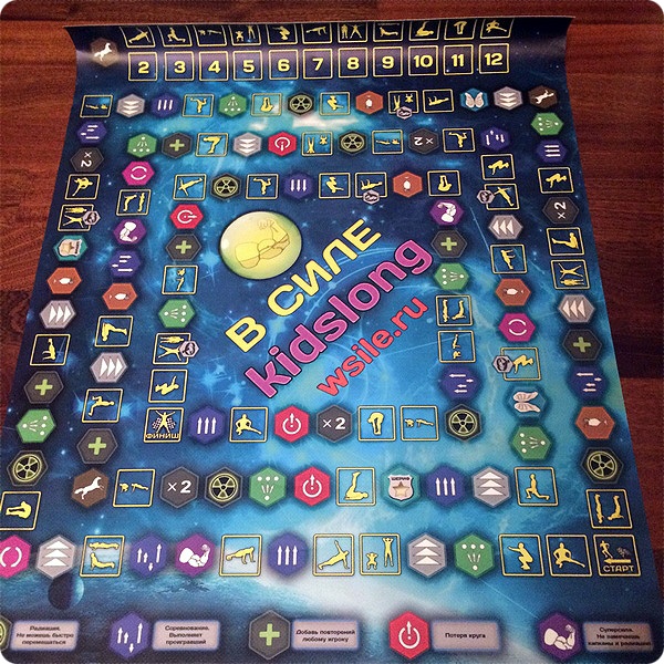 Основная идея игры, конечно, в том, чтобы заставить людей приобщиться к спорту. В данном конкретном случае речь идёт о детях, но у производителя есть ещё несколько вариантов, рассчитанных на более взрослую аудиторию и делающих акцент на определённом виде упражнений. Похоже, перед нами первая настолка для спортсменов 🙂