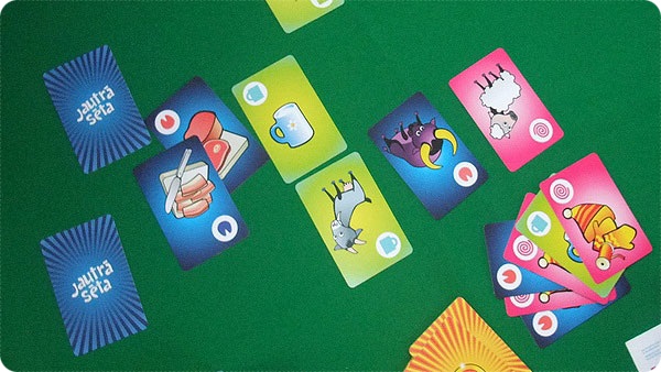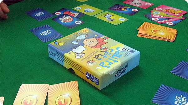 Эту игрушку представляли ребята из Латвии, и она отличалась от всех остальных игр конкурса – уже была издана типографским способом. Игра детская, посвящена домашним животным. В комплекте – колода, состоящая из двух типов карт: животные и их «признаки». Например, тут есть коровы, овцы, курицы и есть соответствующие им признаки: шерсть, рога, яйца и т.п.