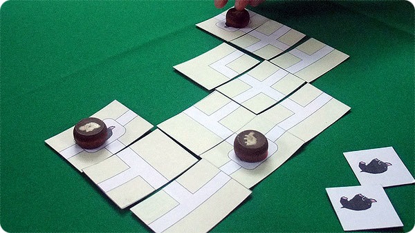 Игра состоит из карточек туннелей и карточек заданий. Первые используются для того, чтобы общими усилиями складывать на столе подземный лабиринт кротовьих нор. Вторые – чтобы зарабатывать очки. На заданиях изображены различные загогулины, которые должен построить игрок в свой ход. Выкладываешь карту, потом показываешь задание (нужно чтобы оно завершилось именно твоей картой) и получаешь очки и новые задания. Ещё в игре есть жетоны кротов, периодически появляющиеся прямо на поле. По ощущениям игрушка напоминает одновременно Saboteur (все вместе роют тоннели) и Ticket to Ride (вначале все долго тянут карты в руку, и только потом начинают выполнять задания).