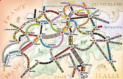 Тов. DjSweeT прислал мне ссылку на материалы для изготовления игровых полей для игрушек серии Ticket to Ride. В архиве есть карта США (первая игра серии), Европы (T2R: Europe) и Швейцарии (T2R: Switzerland).