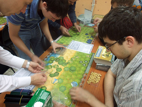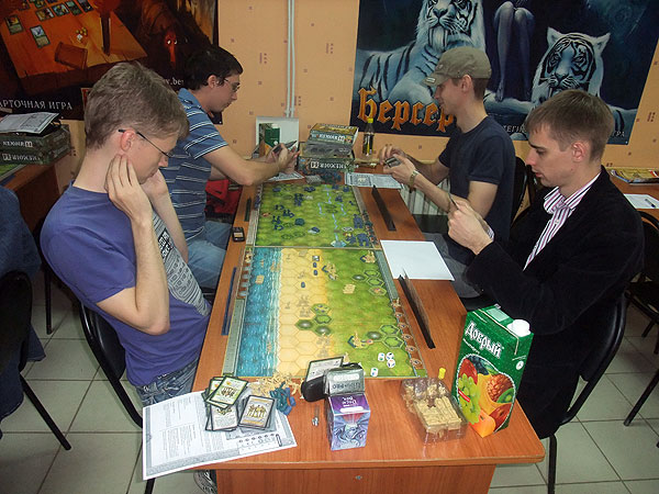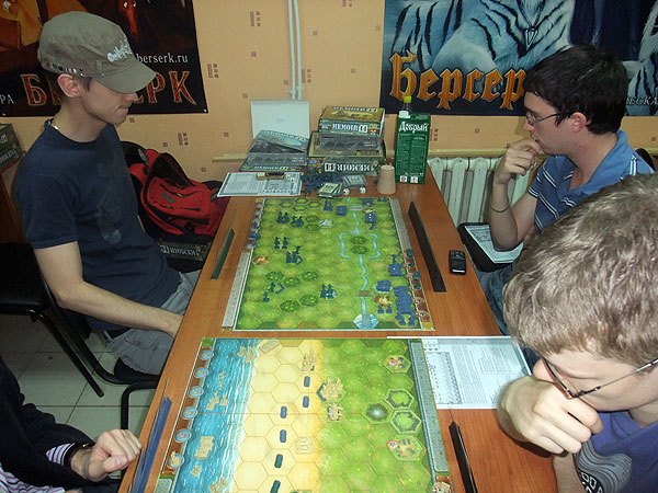 Следующая пара показала на этом столе похожий результат: 5:1, 2:5. А вот третья игра доказала, что сценарий совсем не перекошен в пользу союзников, как это могло бы показаться. Третья пара сыграла его со счётом 5:1, 2:5. Обе победы одержал один и тот же игрок, игравший сначала за союзников, а потом — за немцев.
