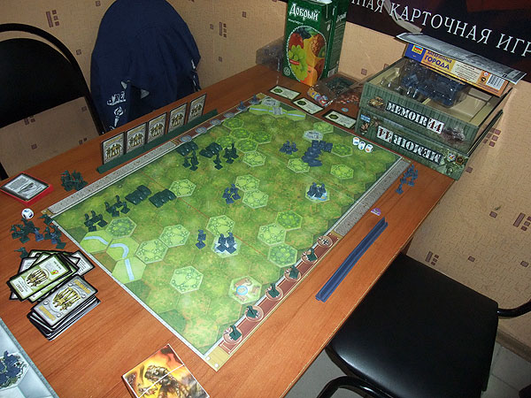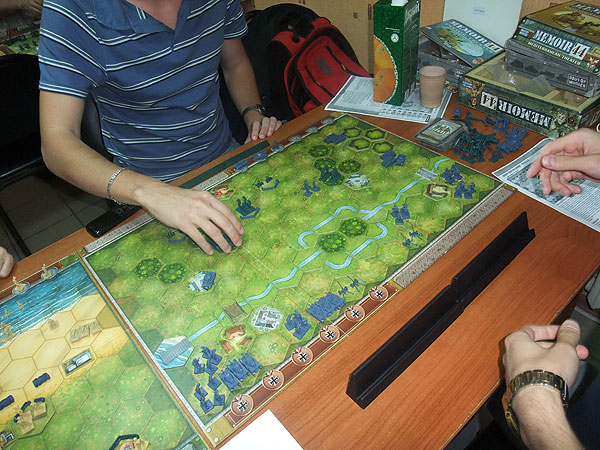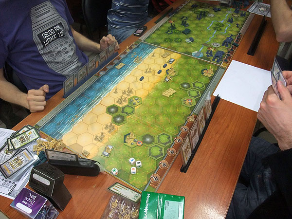 С самого утра всё пошло не так. Сначала выяснилось, что один игрок не сможет прибыть на турнир и потребовалось срочно искать замену. Потом обнаружилось, что на карте из Battlelore сектора нарисованы по-другому, и она не годится для Memoir '44. К счастью, одному из участников как раз на днях пришла посылка с экземпляром игры, который мы и разложили вместо моей "сборной солянки" из карты от Battlelore и солдат из Tide of Iron.