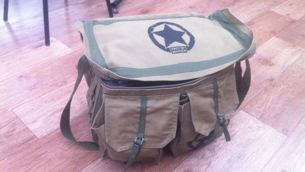 На игротеку я прибыл, фактически, первым. В клубе к этому моменту были только Максим и Аня, победительница недавнего турнира по Цитаделям. Все вместе мы расставили столы и выставили настолки Максима на большой круглый стол (откуда их затем будут брать участники игротеки). Тут я обратил внимание на то, что игры Максим притащил в пакетах и каком-то рюкзаке оливкового цвета. Присмотрелся я к этому рюкзаку, а это, оказывается, ничто иное, как Memoir ’44 – Campaign Bag. «Армейская» сумка-рюкзак, самое, на мой взгляд, бестолковое дополнение для Memoir ’44 🙂