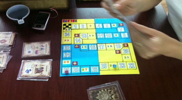 После этой партии мы ненадолго прервались, так как за соседним столом девчонки сменили Зельеварение на Тачки. Игра эта очень проста, но, на мой взгляд, совсем не девчачья. Максим быстренько объяснил им правила и вскоре уже две машинки понеслись по трассе наперегонки, а мы вернулись к Доминиону.