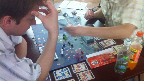 В это же время на соседних столах появились Пандемия и ещё какая-то игра. Потом наши соседи играли ещё в Эволюцию и Манчкина.