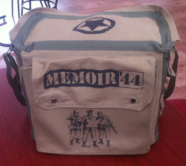 Посмотреть, повертеть и пощупать его было, конечно же, любопытно. В сумку помещается три больших коробки с играми (или база Memoir ’44 с четырьмя дополнениями). На лицевой стороне у неё есть ещё два довольно больших кармана, куда, наверное, можно упихать даже две разобранных башни кубиков, а с торца имеется большое тонкое отделение для бумажных карт из серии Battle Maps. Скорее всего туда же можно уместить одну из двух больших карт из Breakthrough.