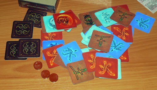 Абстрактная мемо-дуэль. В этом словосочетании почти полная характеристика игры. Выигрывает здесь тот, кто очень хорошо всё запоминает и считает. Присутствует также и элемент блефа. К примеру, игрок видит, что я постоянно смотрю тайлы возле красного дракона, и подозревает, что я собираю комбинацию из красных. Несколько раз я так подлавливал народ, но чем больше ты играешь с одним противником, тем больше блефа будет, ведь если знаешь, что тебя могут накрыть с комбинацией, то можно и подсунуть тайл другого цвета и тд.
