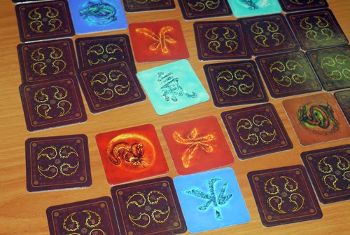 На столе формируется поле 6х6, где 32 тайла закрыты, а 4 дракона открыты всегда (у них и рубашек-то нет). Цель игры — заработать как можно больше очков. А очки мы получаем за вскрытые комбинации тайлов.