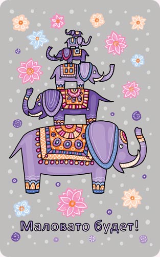 Не то дело — слон. Он в колоде всего один и поэтому его нельзя сбросить. Таким образом игроки вынуждены, не побоюсь этого слова, впаривать друг-другу слона, стараясь избавится от него, что оправдывает название игры.