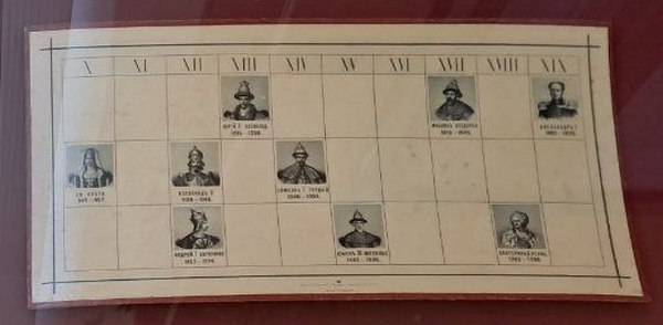 В «Историческом лото» на каждом билете изображено по 9 государей. Чем их надо закрывать не совсем понятно, т.к. бочонков в игре как будто бы нет.