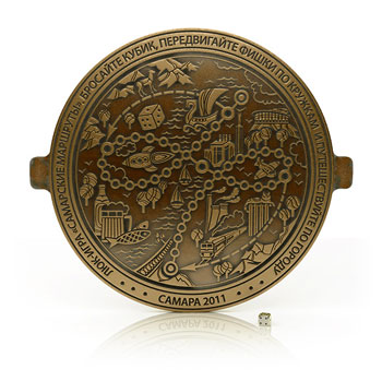 Тов. vladdrak недавно подметил, что у нас в Самаре чуть было не появились канализационные люки с настольными играми. А дело было так: в честь 70-я создания Управления тепловых сетей "Куйбышевэнерго" в городе объявили конкурс на создание "юбилейных" крышек люков. Всего было подано 94 работы, среди которых был эскиз люка с изображением настольной игры.