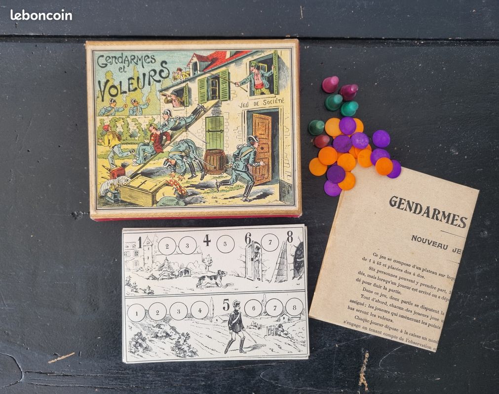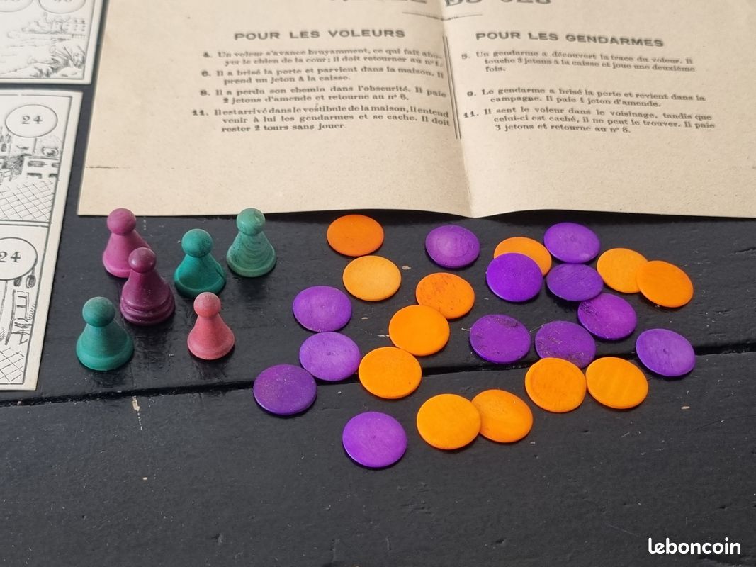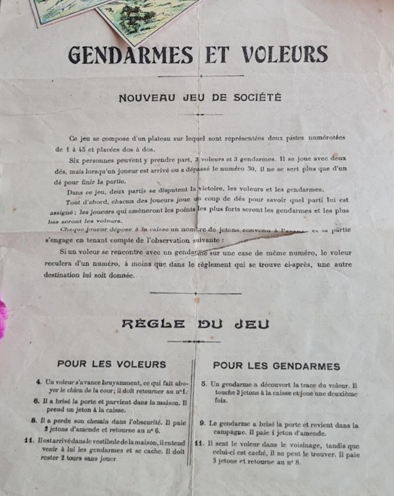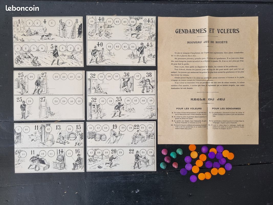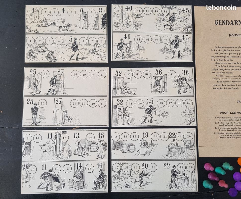 Su in voleur se rencontre avec un dendarme sur une case de meme numero, le voleur reculera d’un numero, a moins que dans le reglement qui se trouve ei-apres, une autre destination lui soit donnee.