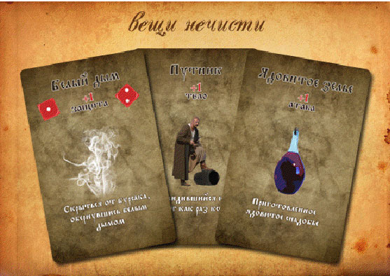 На мой взгляд если по повести или фильму «Вий» и создавать игру, то в первую очередь напрашиваются корпоративки типа Ghost Stories, но с нашим знакомым антуражем, поле в виде внутренней части церкви и прущая со всех сторон нечисть, а игроки в бешеном ритме ползают по церкви, чертят круги, вбивают в гроб гвозди и со страхом ждут пришествия босса с неподъемными веками 🙂