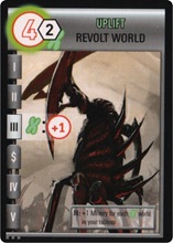 «Uplift Revolt World» точно таким же образом влияет на военную мощь, но не может быть стартовым миром: его ещё надо завоёвывать. А «Ravaged Uplift World» хоть и вычитает одно ПО, зато позволяет присоединять военные хромосомные миры как гражданские, да ещё и даёт 1 ГП в пятую фазу, если владелец имеет больше всех таких миров.