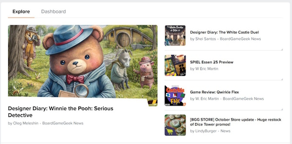Есть такой сайт о настольных играх — Board Game Geek. Это крупнейший в мире портал о настолках. Там и база игр, и обзоры, и форумы и всё-всё-всё. И вот однажды на главной странице сайта появилась заметка об игре «Винни-Пух: Серьёзные дела». Для истории: произошло это 15 октября 2025 года. Эта заметка написана Олегом Мелешиным, разработчиком этой настолки.