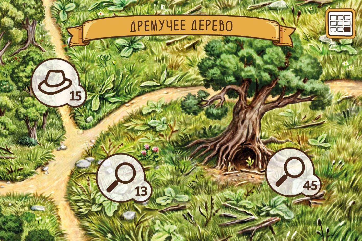 От статичного картонного поля мы отказались, как только поняли, что скоро сыщикам станет тесно в их родном лесу. Мы сразу же перешли к картам локаций, формирующим игровое поле в стиле “The 7th Continent” и “Tainted Grail”. Это проверенный приём в приключенческих играх: он помогает с визуализацией, позволяет открывать мир постепенно, наконец, с ним можно припасти пару шьямалановских твистов для игроков.