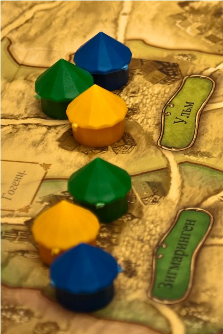 Для меня, как любителя делать PnP версии игр, Турн и Таксис привлекает наличием большого количества фишек — 24 станции каждого цвета. Итого 96 фишек)