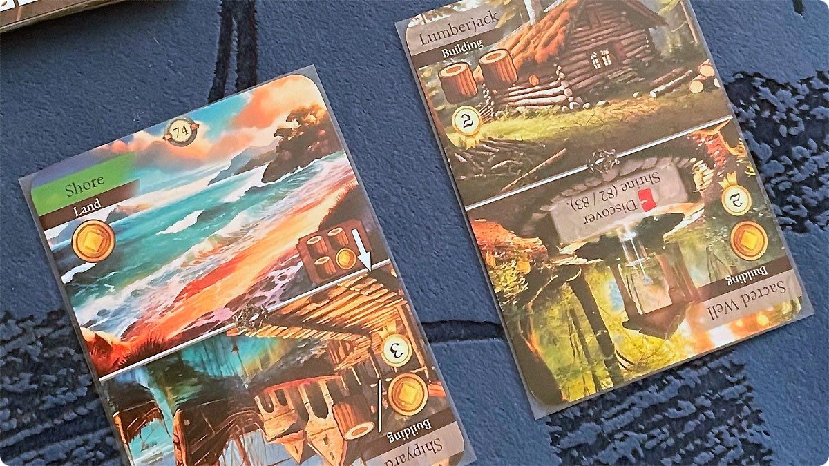 Что касается того, что происходит в игре… Есть ощущение, что прокачка пошла куда-то не туда. Точнее, так: карты прибывают постоянно. Появляется что-то новое, и все карты хочется улучшать. Вот только ресурсов на это не хватает. Словно бы, в начале партии надо было делать основной упор на них. Сюрприз, да? Это, пожалуй, одна из прописных истин в играх, где есть какие-то ресурсы: можешь сделать так, что бы их приходило больше – делай. Особенно ощущается нехватка леса. Прямо, в дефиците. С монетками ситуация хорошая, руда тоже в приличном количестве. А именно дерева постоянно нет.