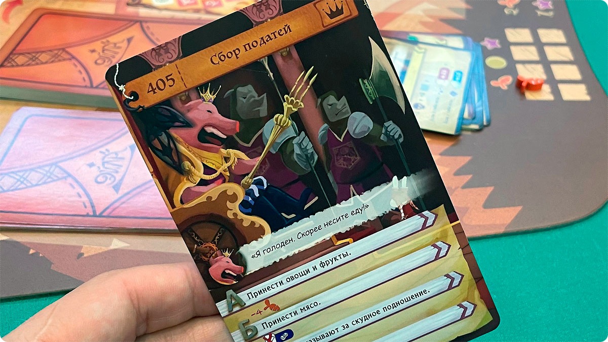В этот же раз пришлось играть «правильно», на добычу тех самых ресурсов ради короля. И особо ничего не вышло. Монеток почему-то не прибавлялось. Морковки быстро закончились. Теоретически их источником должны были быть карты подработок и возможностей, которые можно периодически докупать, но дочка выбирала такие варианты, которые пользы особо не приносили.