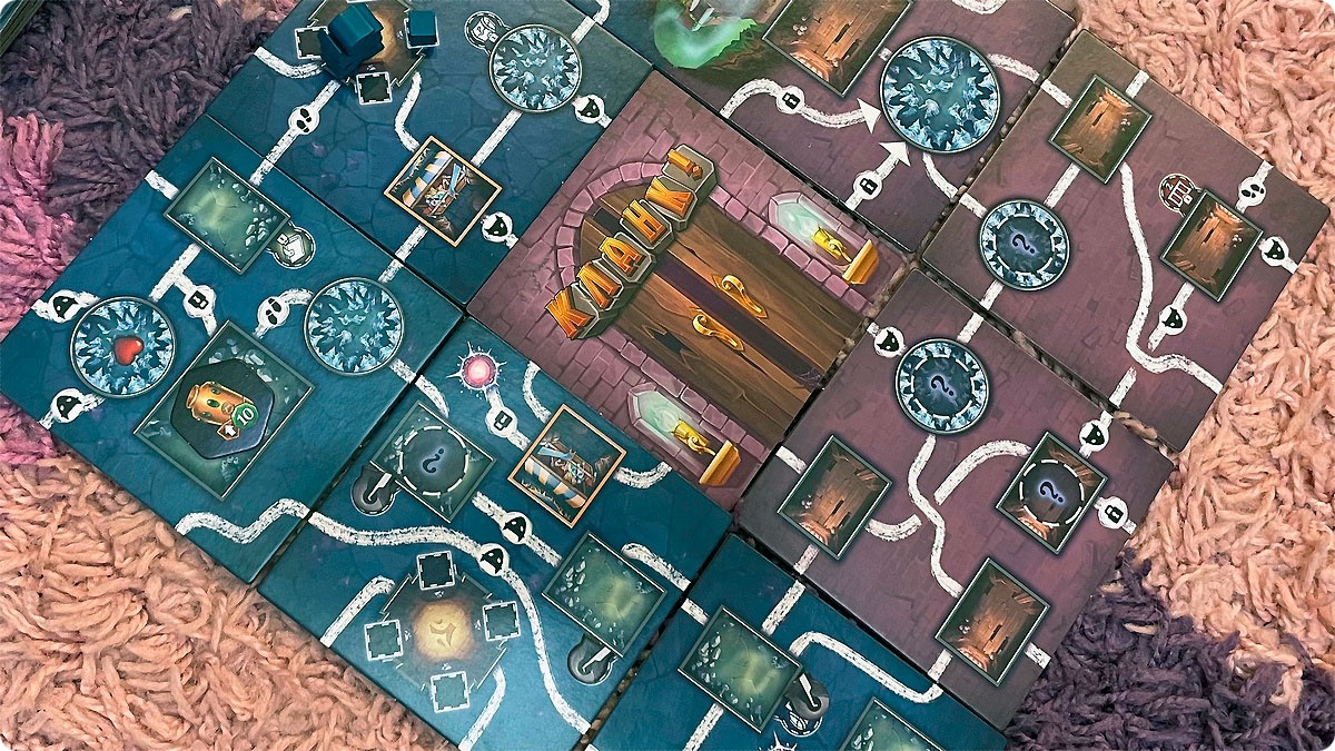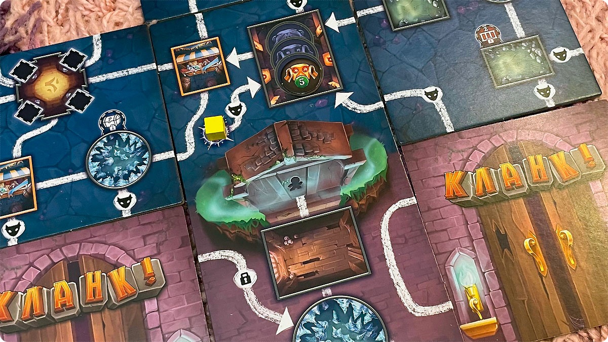Из-за этого вот формирования поля прямо в процессе игры, кстати, «Катакомбы» играются дольше обычного «Кланка». Тут же физически надо брать, крутить и класть эти участки. На это банально нужно время. А если в них ещё всматриваться, да размышлять, а как его выгоднее разместить… В общем, за партию тут выходит примерно 20 участков. Вот, считай, это где-то +15-20 минут чистого времени.